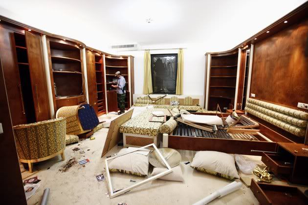 The gold-plated cutlery and crystal champagne glasses, the Versace and Armani suits and rows of unworn designer shoes, are all that remain at the luxurious seaside compounds of the children of Muammar Gaddafi.
