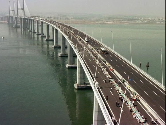 Donghai Bridge Completed on December 10, 2005, the Donghai Bridge has a total length of 32.5 kilometres and connects Shanghai to the Yangshan port in China. The 'Donghai Bridge' is popularly known as 'The stone'.